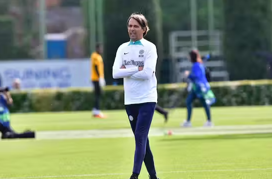 国际米兰主教练西蒙娜·因扎吉观看欧冠决赛前的训练。 与曼城。