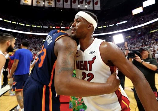 吉祥坊迈阿密热火队的吉米巴特勒在 NBA 东部半决赛的第 6 场比赛中对阵纽约尼克斯队。