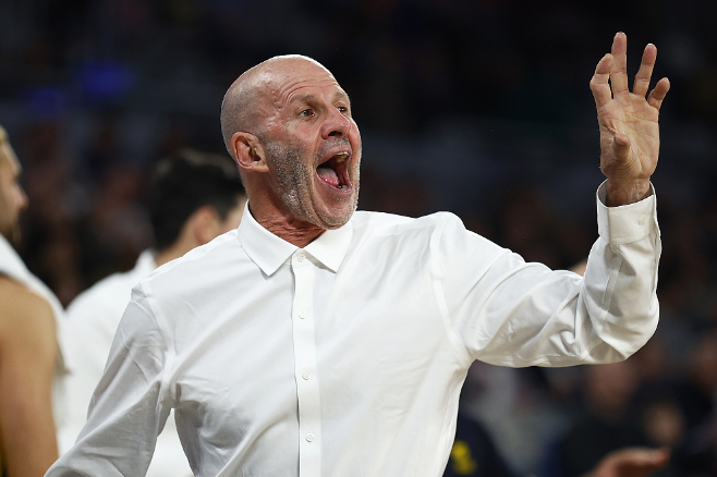 澳大利亚队主教练布莱恩·古尔吉安观战国际篮联篮球世界杯亚洲区预选赛