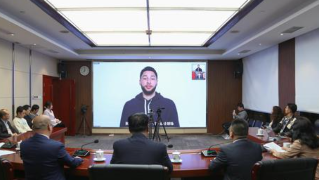 本西蒙斯在 2023 年视频会议新闻发布会上发表讲话。 4月9日